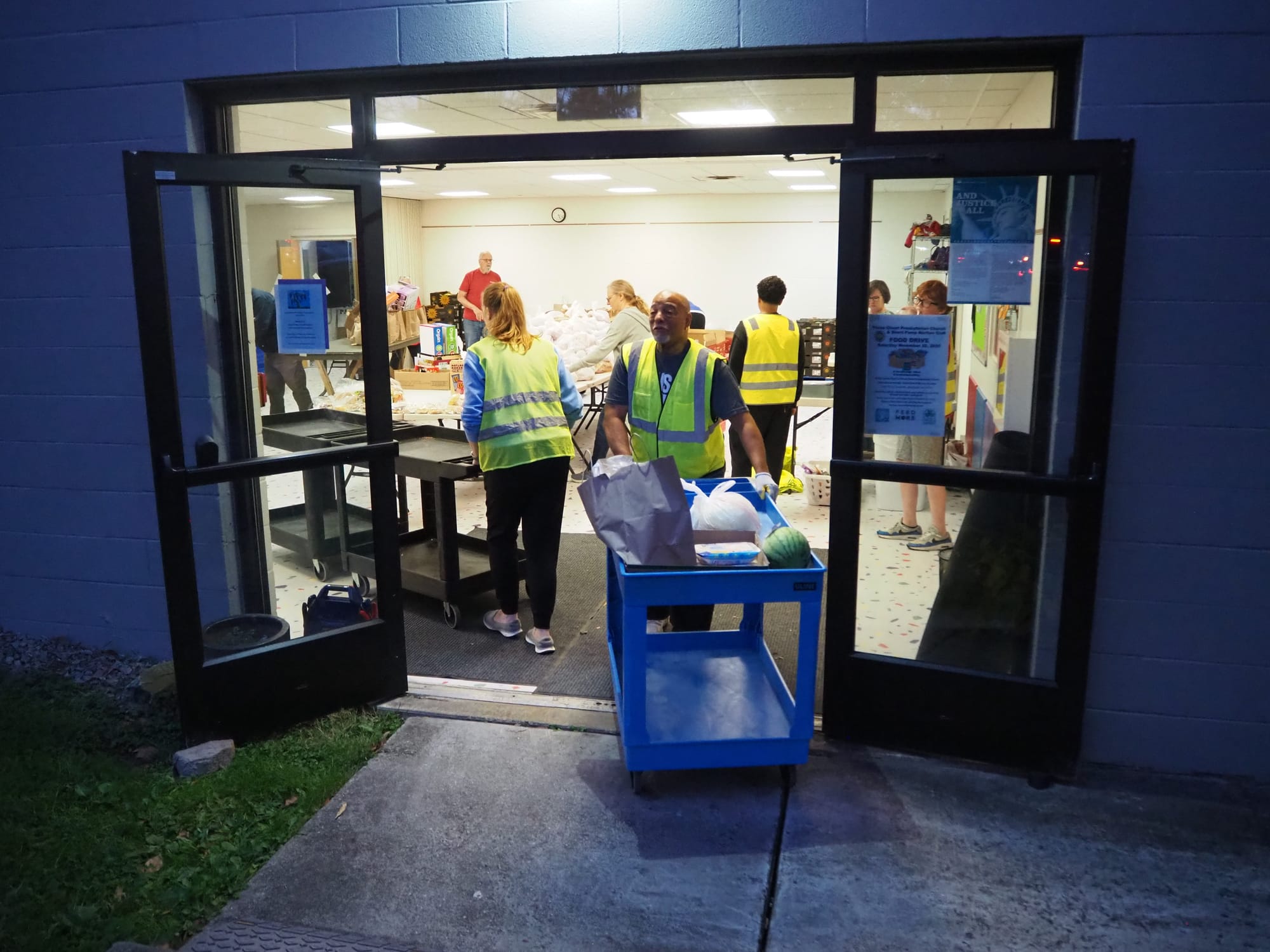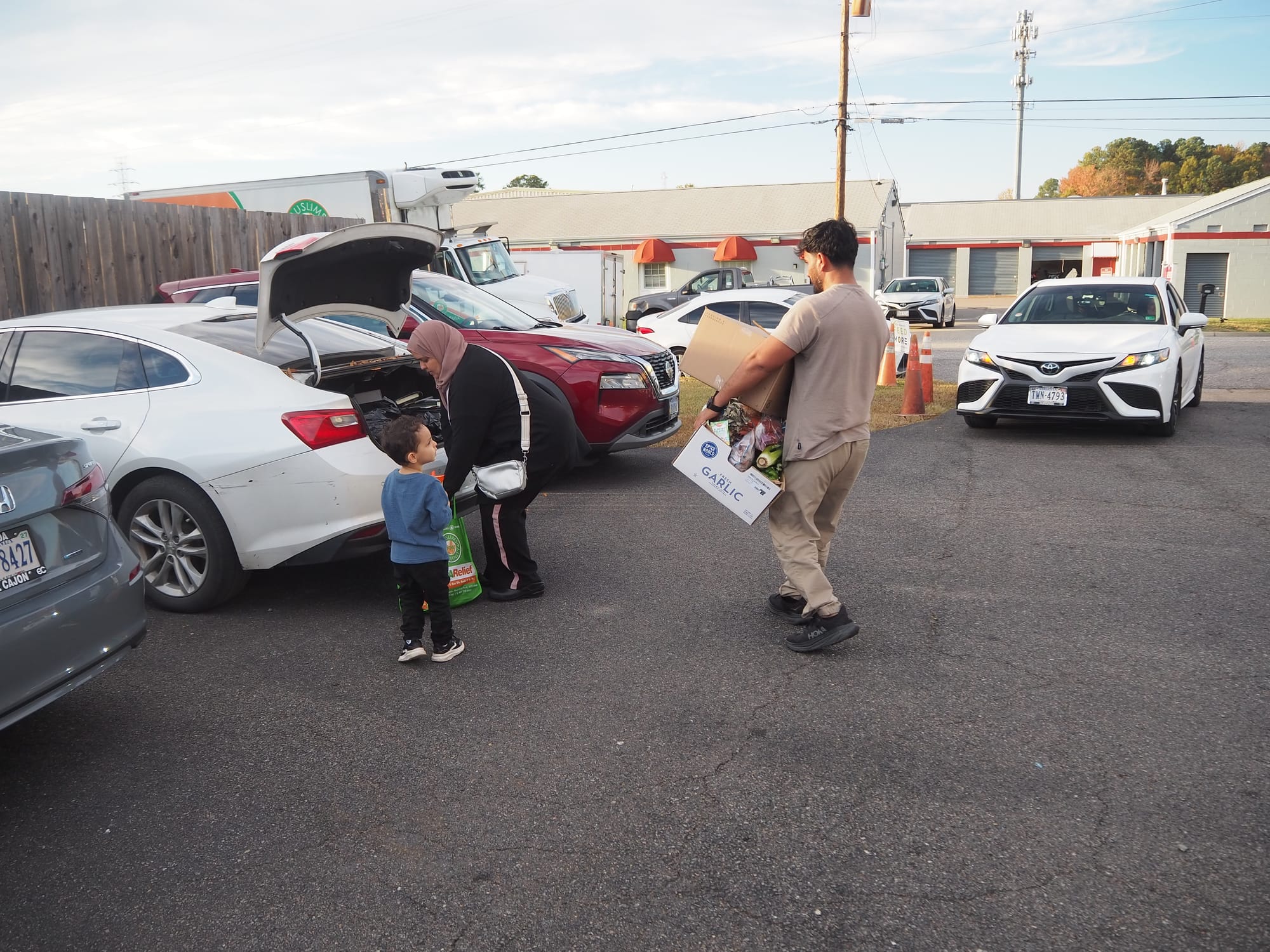Staff and volunteers at the ICNA Relief food pantry distribute crucial sustenance to a wide variety of people during an event Nov. 5, 2025. (Dina Weinstein/Henrico Citizen)