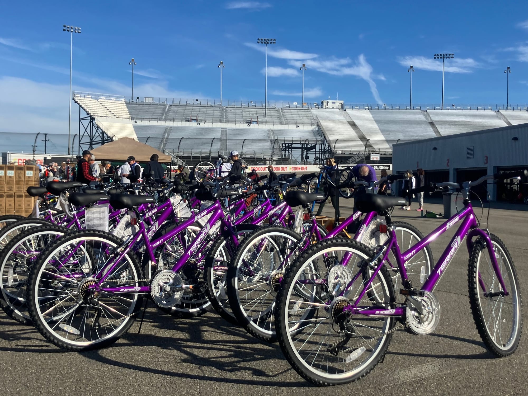 More than 100 volunteers gathered at Richmond Raceway Nov. 1 to assemble 550 new bikes as part of the Bikes for Kids program.