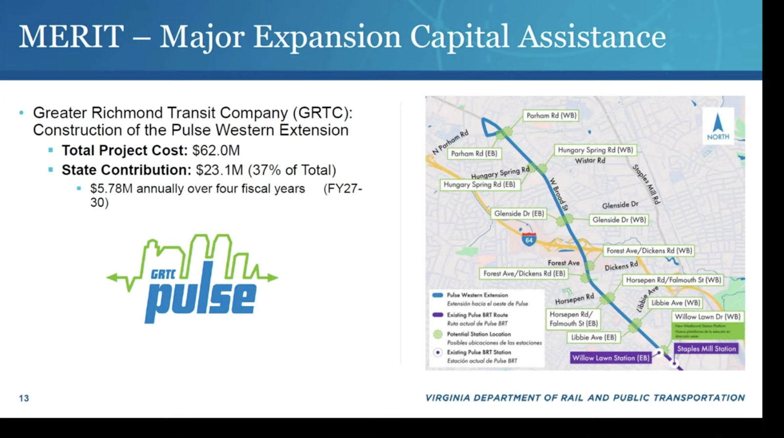 On Wednesday, the CTB voted to approve the DRPT's Six Year Improvement Plan, which includes the GRTC Pulse funding.