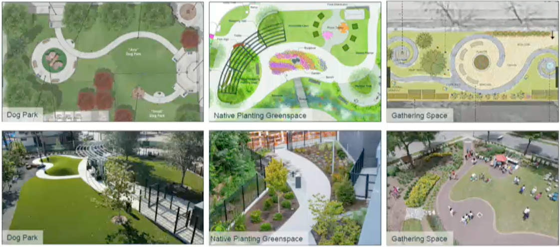 Before the meeting, developer Spy Rock LLC added some additional details about pedestrian accommodations, such as 5-foot sidewalks along both streets. It also added more details about how the prominent green space at the corner of Jacque and Westmoreland might be used, including visualizations.