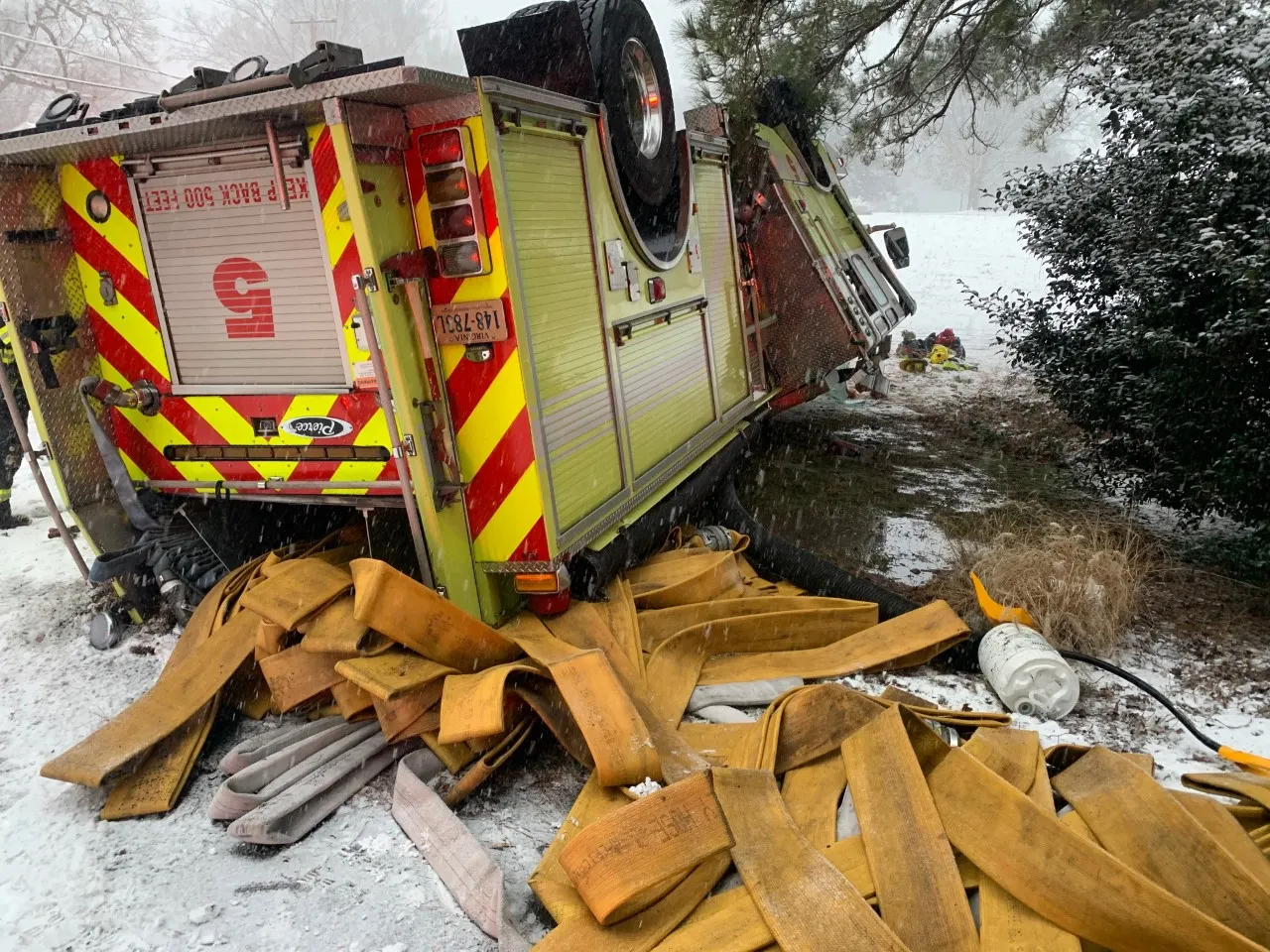 Henrico fire engine overturns, 4 firefighters taken to hospital