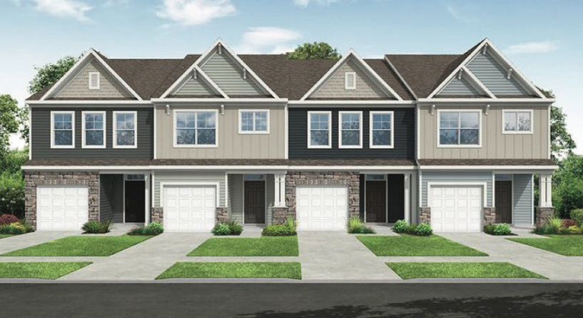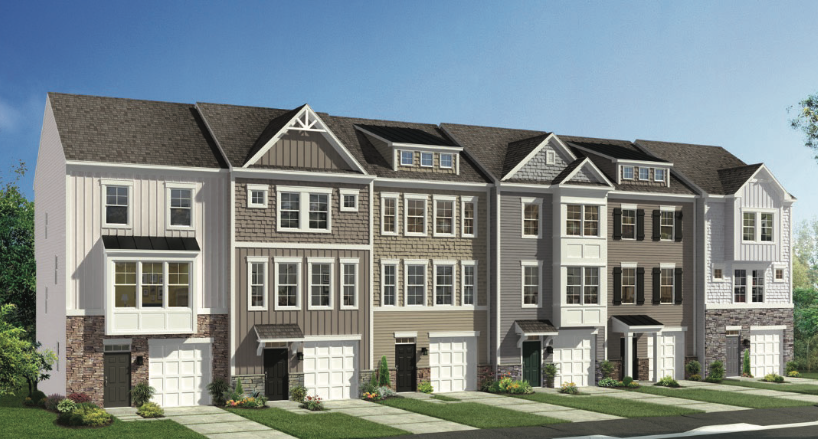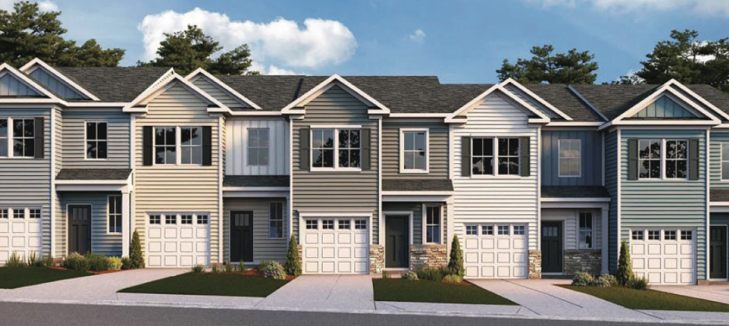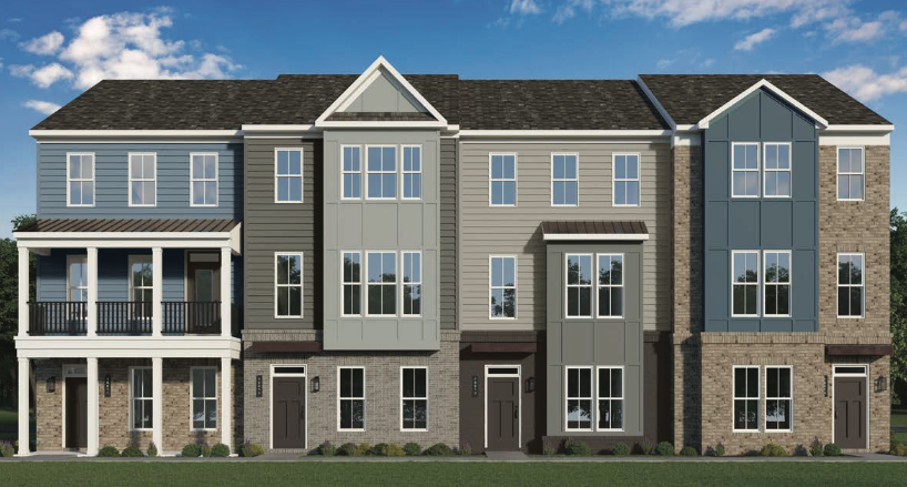 Examples of the type of detached single-family homes (left) rear-loading townhomes (center) and front-loading townhomes (right) planned at Westford Glen in Glen Allen. (Courtesy Henrico County/Main Street Homes of VA Inc./Schell Brothers)