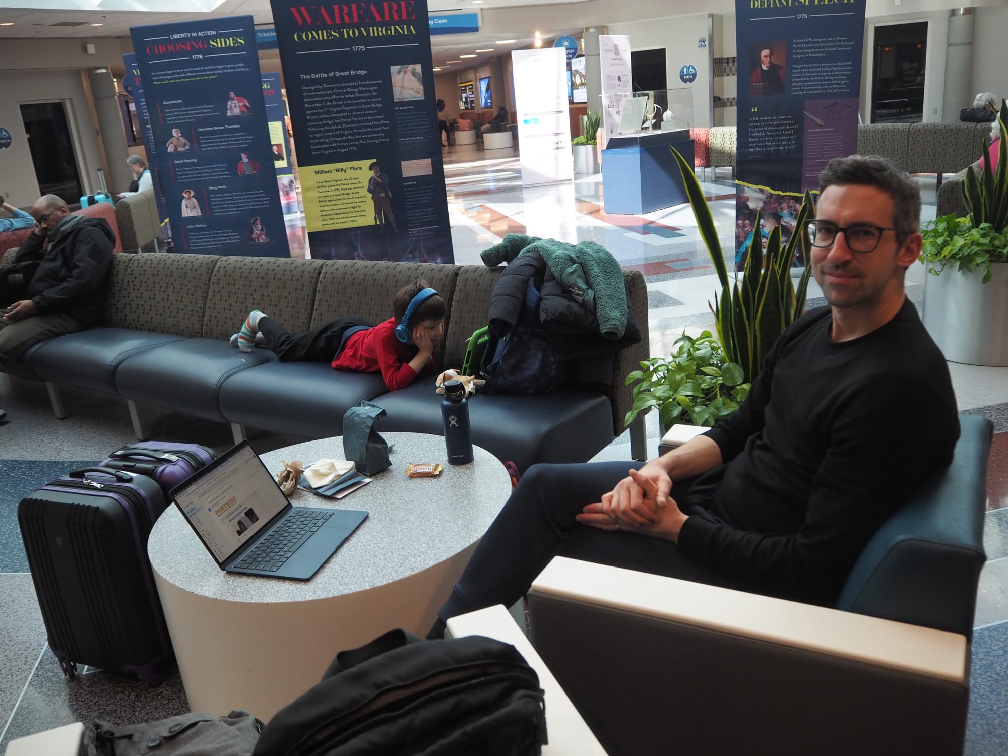 On Tuesday morning, Holger Droessler and his 6-year-old son, Noah, lounged on couches in the central atrium at the Richmond International Airport.