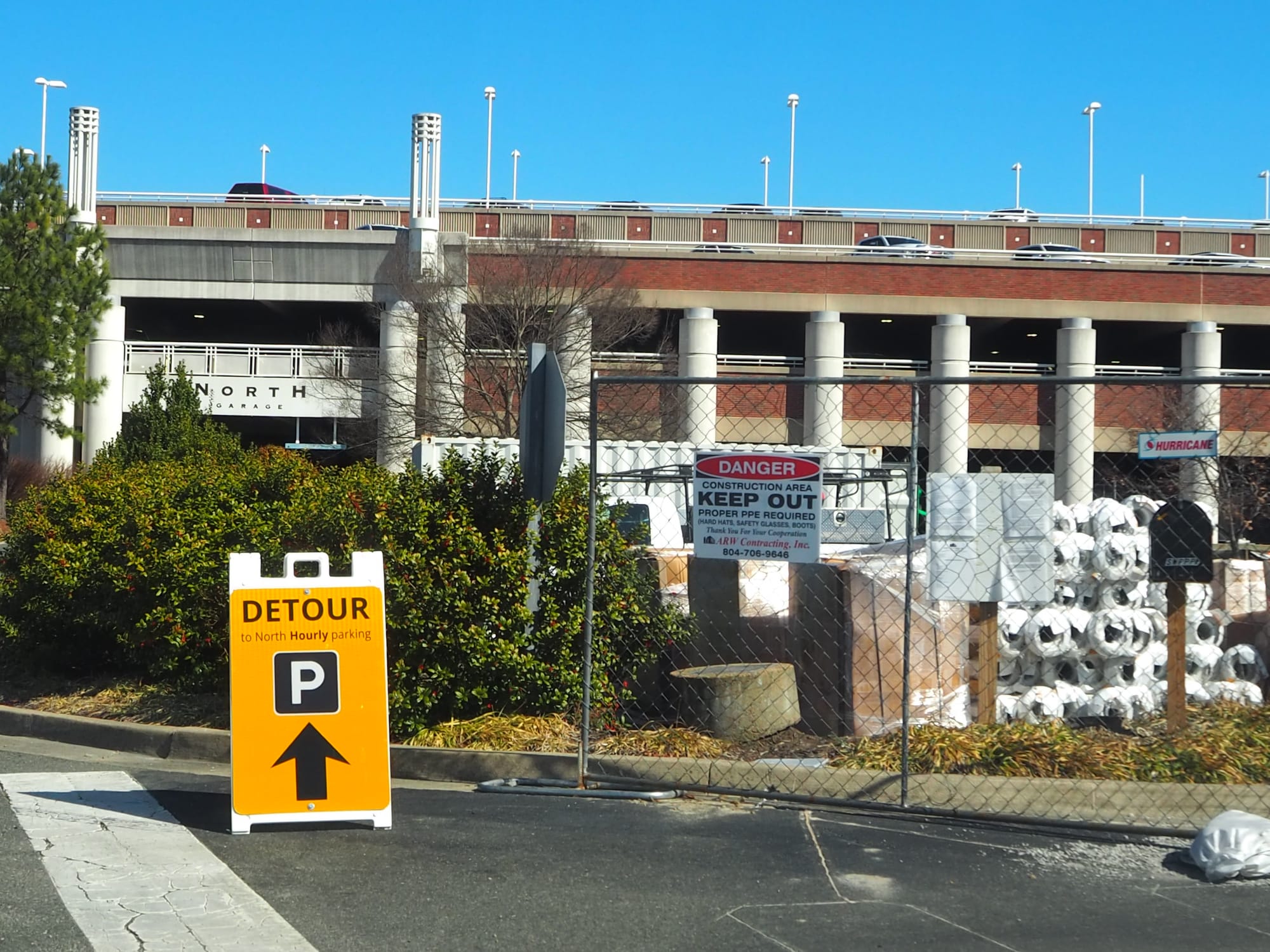 RIC is urging passengers to allow extra time and follow directional signs surrounding this construction. There are numerous detours within the hourly parking garages that started late last month.
