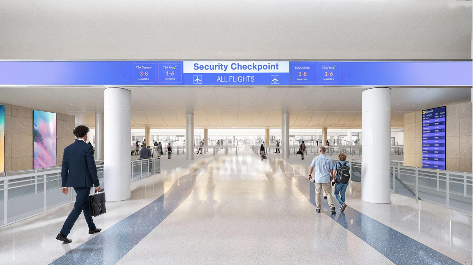 “There are multiple benefits of a consolidated checkpoint,” said Nagesh Tummala, director of capital development. “One is, currently we have two checkpoints. And so, the passenger has to be cognizant on which airline they are going to, which gate they are going to. By having the checkpoint further up at the throat, they don't have to think about that process so they can go to the checkpoint, finish the screening, and then they can look at the dynamic signage and decide which gate they need to go to. It helps the passenger and prevents confusion.”