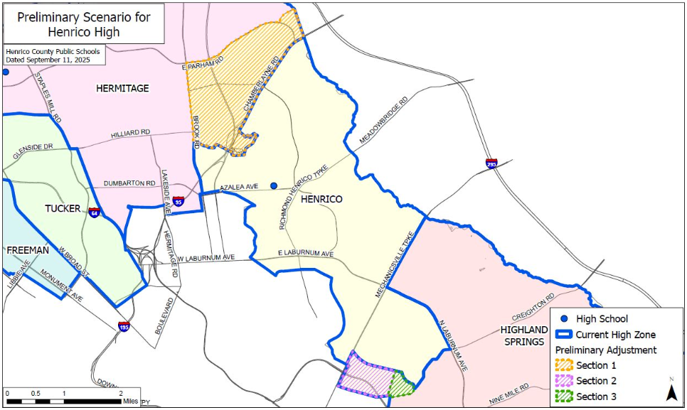 • Section 2 and Section 3: Central Gardens, Woodville, and Fairways neighborhoods (80 students) would move from Highland Springs to Henrico.