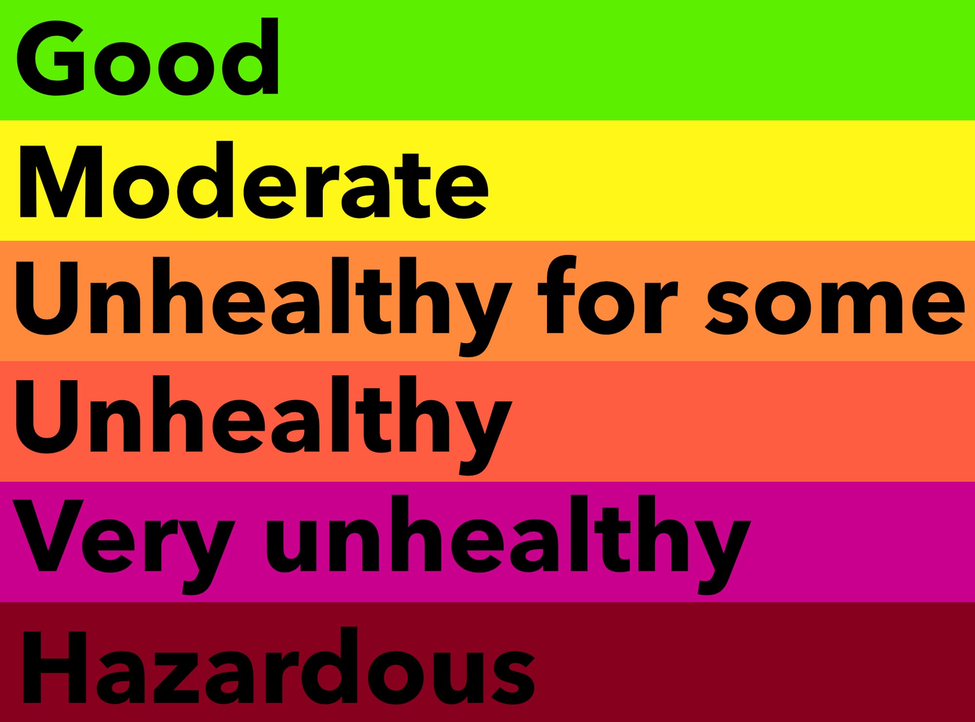 The air quality is broken down by color, indicating concern as levels increase. Green is good, yellow is moderate, and orange is where it starts to get unhealthy for sensitive groups.