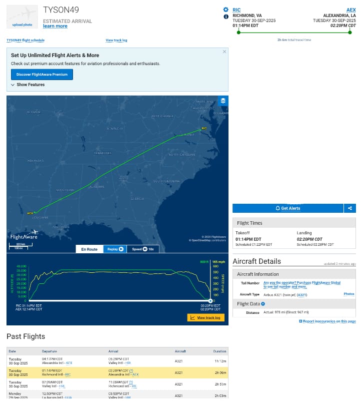 Ownership information for the “Tyson" ICE flights (an identifier frequently used for the flights and one that is most commonly associated with President Trump's personal plane, perhaps as a nod to former boxer and Trump supporter Mike Tyson) are not available on sites such as FlightAware, adding another layer of secrecy to the government-funded flights.