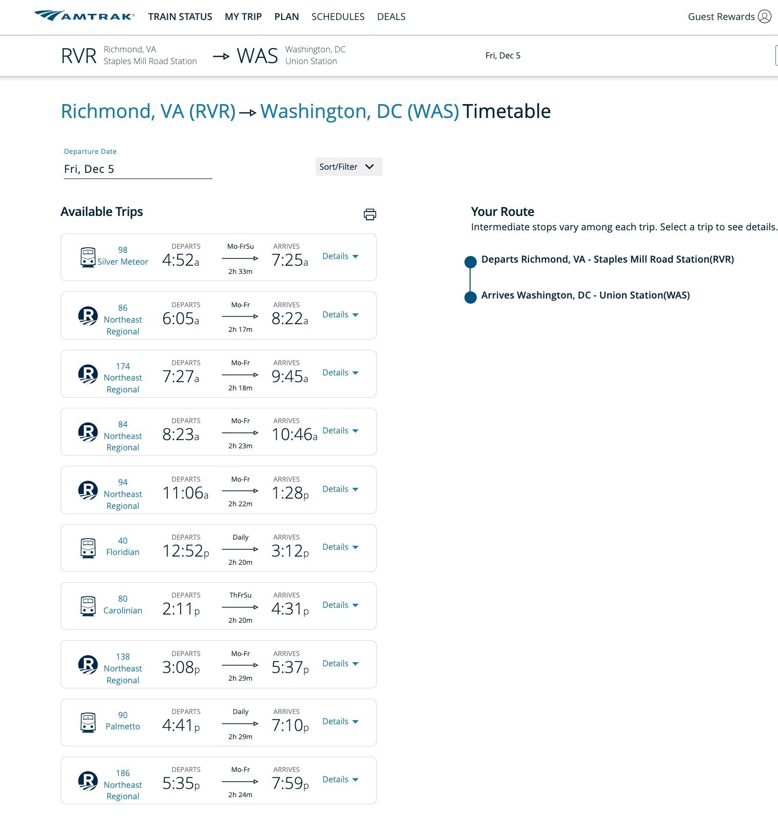 During construction, the morning trains from Norfolk and Newport News to Washington, D.C. will be replaced by earlier express buses that will not make a stop in Richmond. Route 51 which stops at both Staples Mill and Main Street Station is cancelled during construction. That is the one daily round trip from Richmond Main Street.